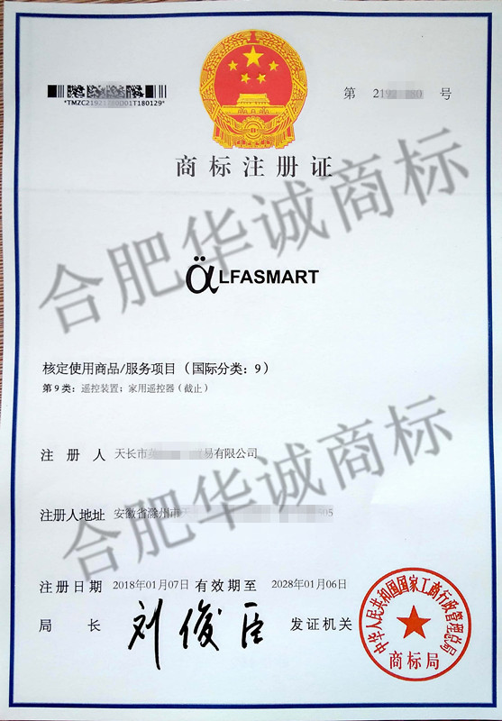 您委托我所代理商标注册申请,名称为“LFASMART” 9类商标注册证已下达。