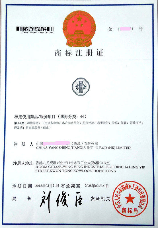 您委托我所代理商标注册申请,名称为“养生天下” 44类商标注册证已下达。