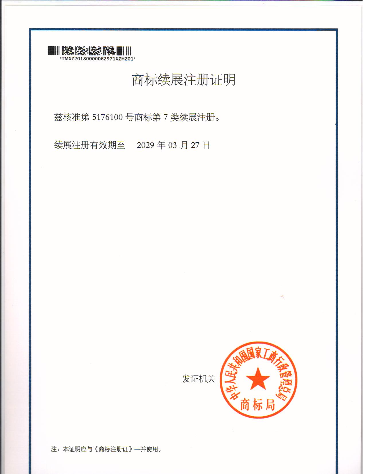 您委托我所代理商标注册申请,第“5176100”7类商标续展注册证明已下达。